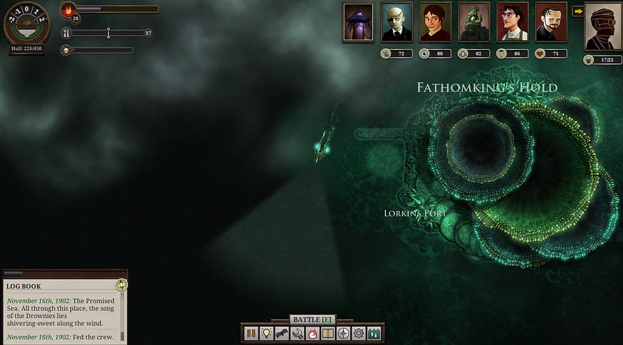 Sounds bleak, right? It is…and yet, I found it cozy. The design is washed in a chilling phthalo green, nevertheless each time I took my ship out to sea, I felt wrapped in a warm blanket of impending horrors.